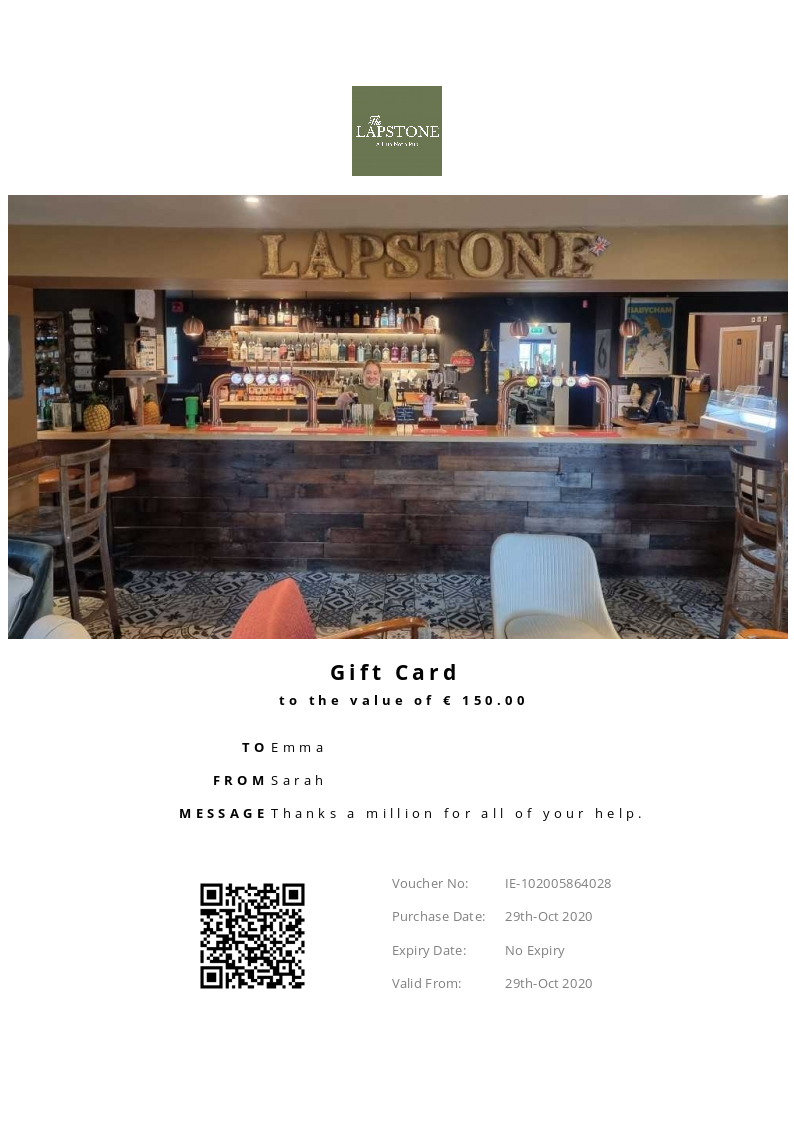 The Lapstone allows you to purchase instantly printable gift vouchers, special offers and tickets using the Voucher Connect platform.